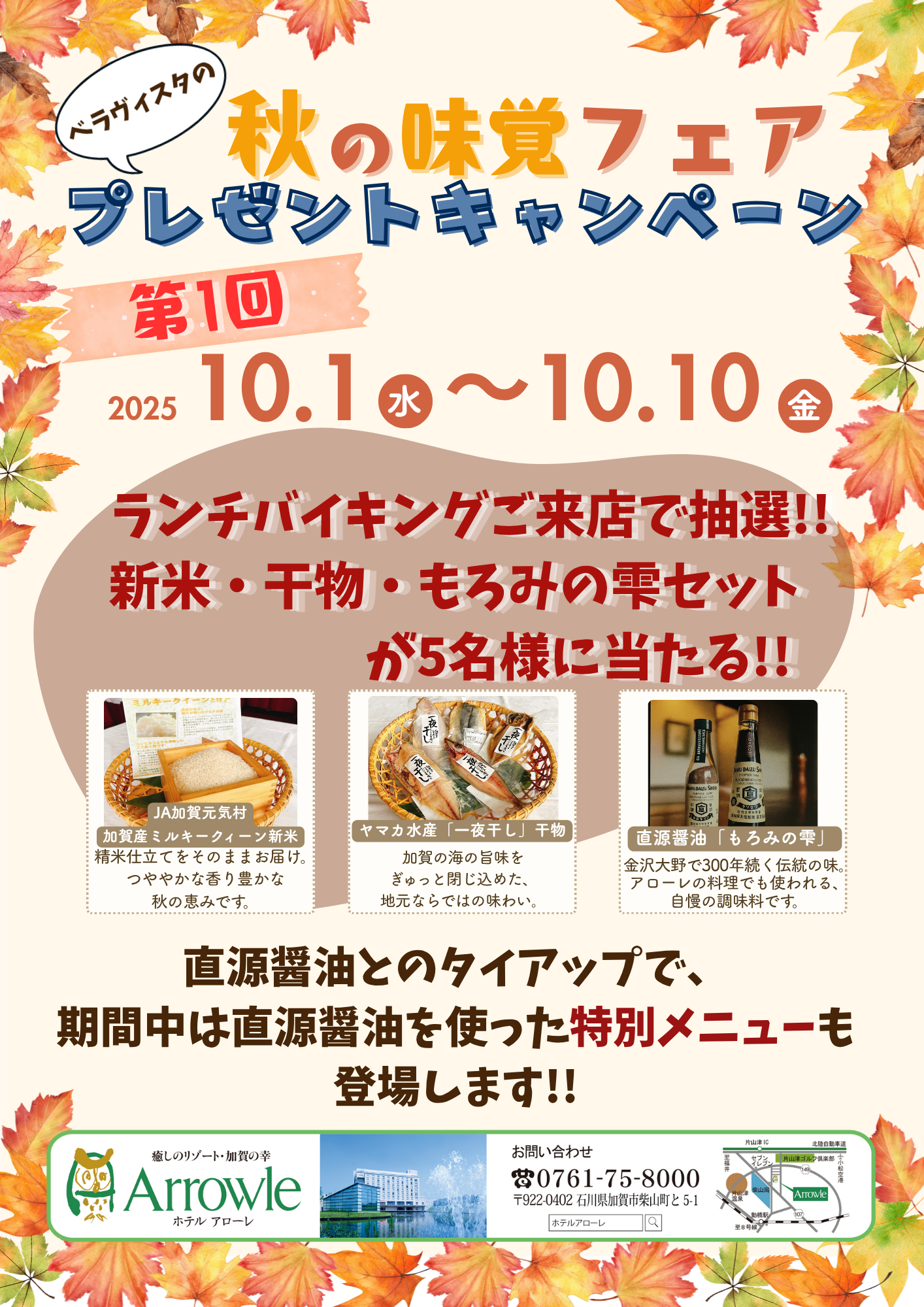 🍂ホテルアローレの秋、満喫。🍂「秋の味覚フェア」で、石川の恵みを味わう豪華プレゼントキャンペーン開催! new