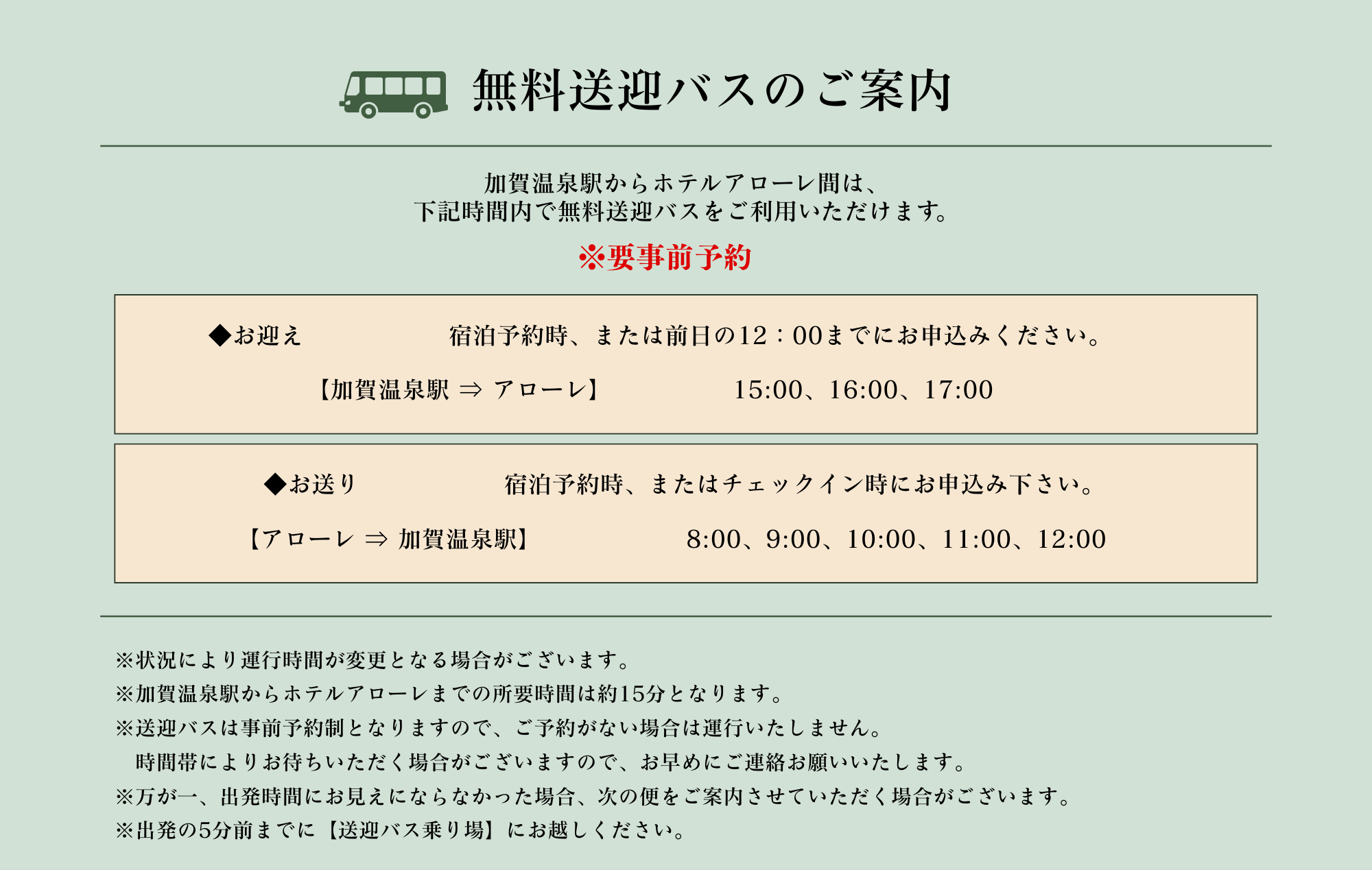 下記時間内で無料送迎バスをご利用いただけます。