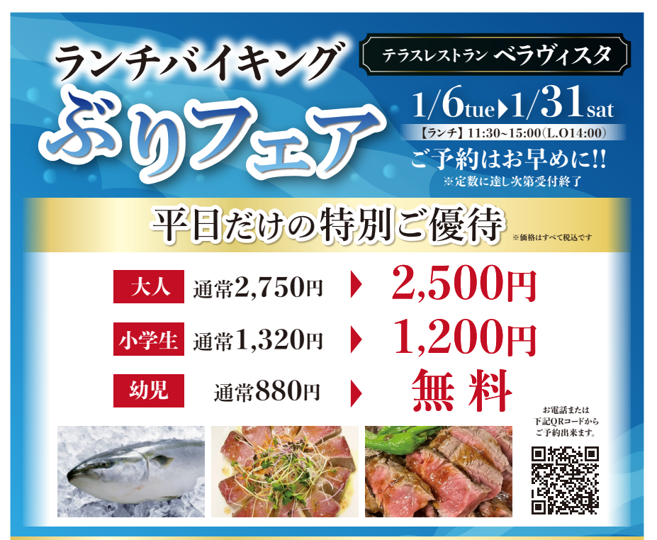 🎉✨1/6(火)【スタート】旬の「ぶり」を味わうランチバイキング開催!平日限定のお得な優待も🐟✨ new