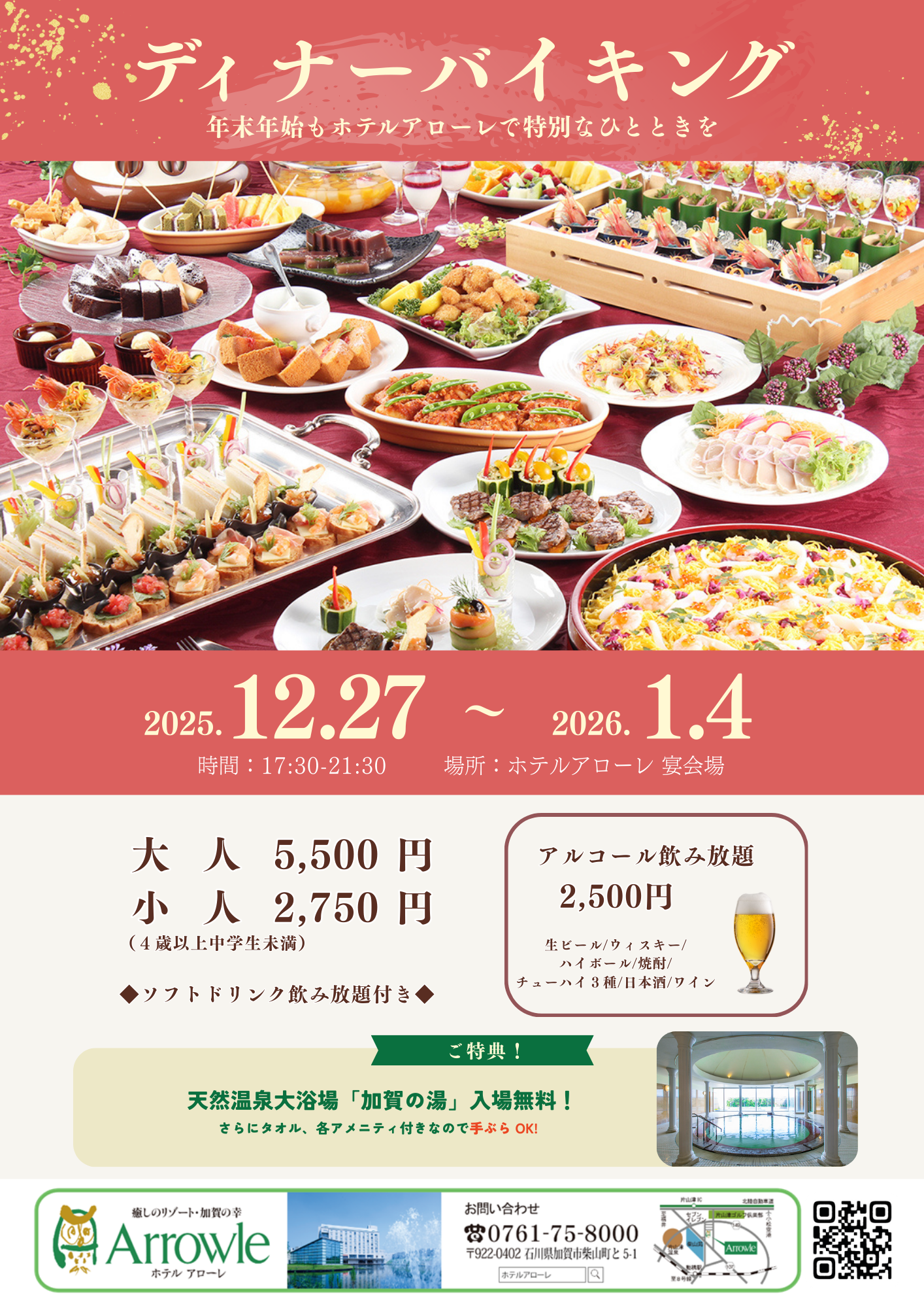 年末年始といえば・・・ お子様連れをはじめ、ビールが好きな大人の方まで幅広い層から人気の『アローレディナーバイキング』