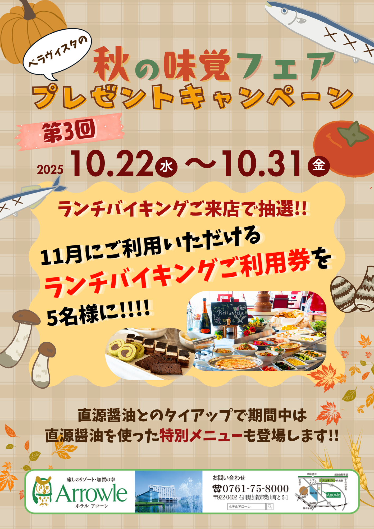 🍂ホテルアローレの秋、満喫🍂「秋の味覚フェア」で、石川の恵みを味わう豪華プレゼントキャンペーン第3弾! new