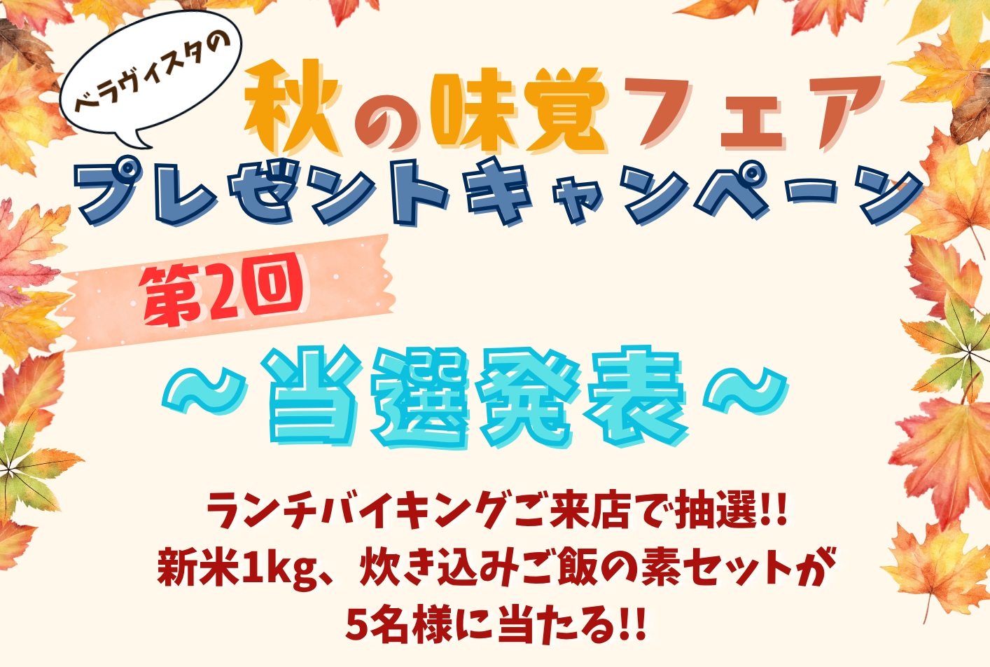 【抽選結果のお知らせ】「第2回秋の味覚フェア」にご応募いただきありがとうございました! new