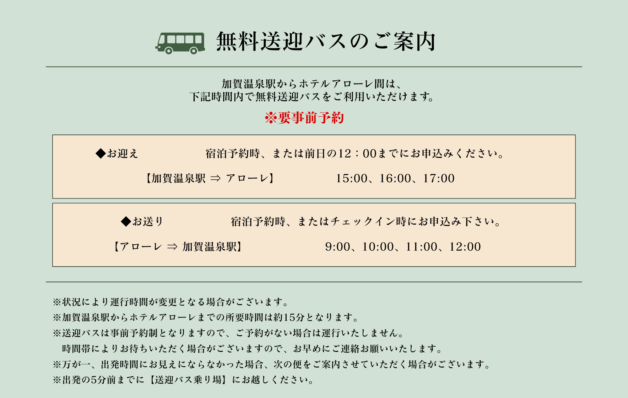 下記時間内で無料送迎バスをご利用いただけます。